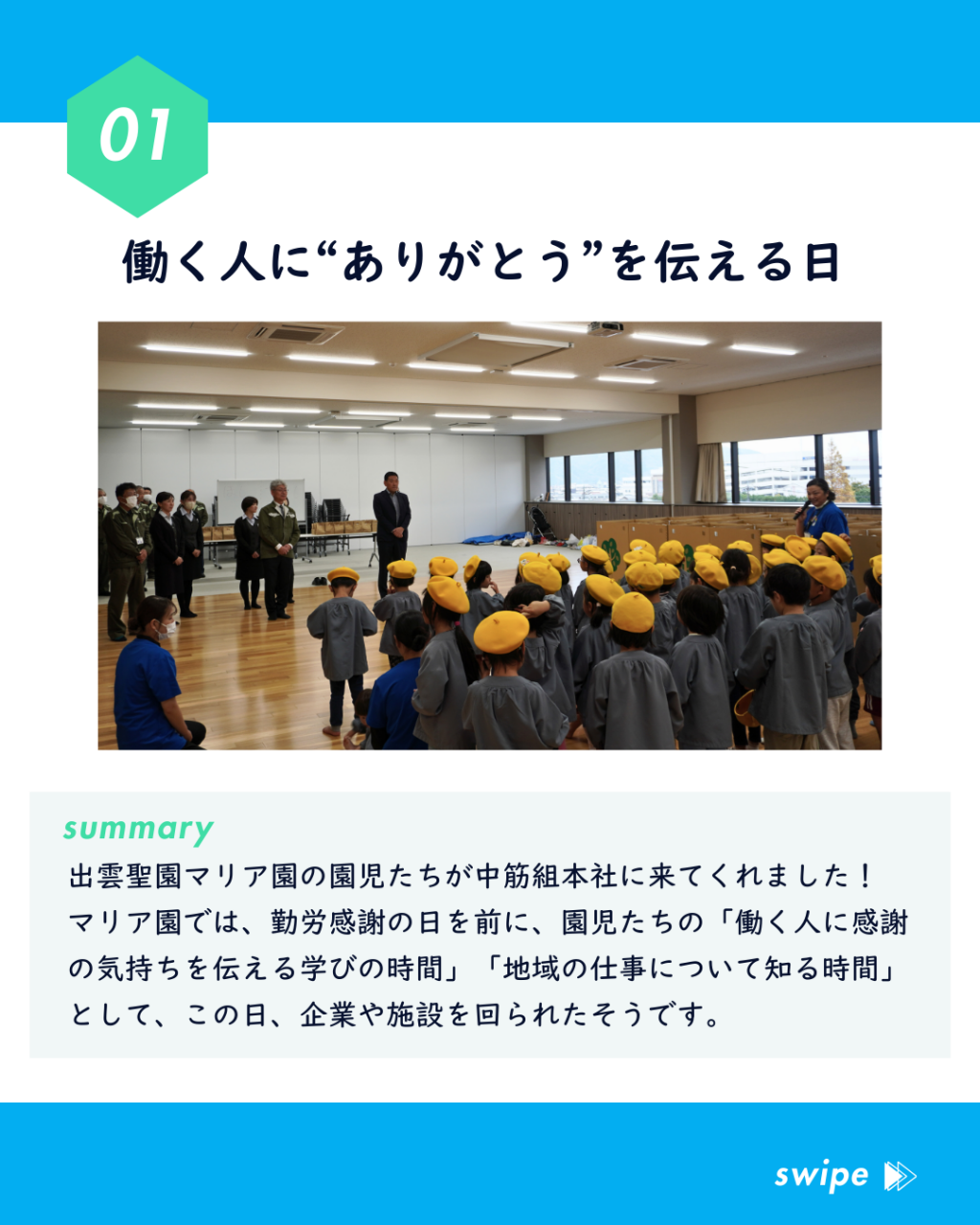 先日、出雲聖園マリア園の園児たちが中筋組本社に来てくれました!