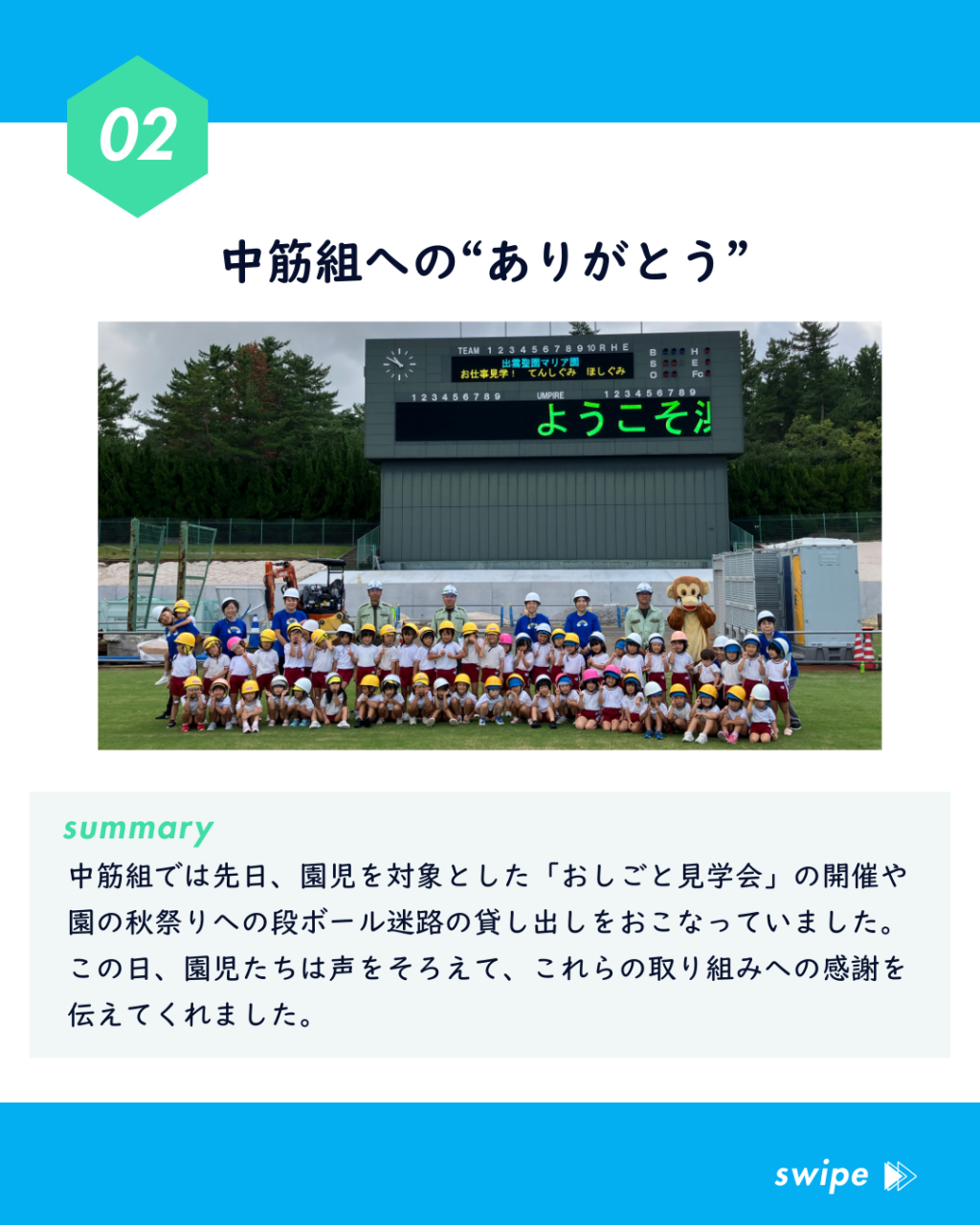 中筋組では先日、園児を対象とした「おしごと見学会」の開催や